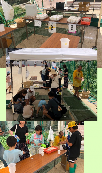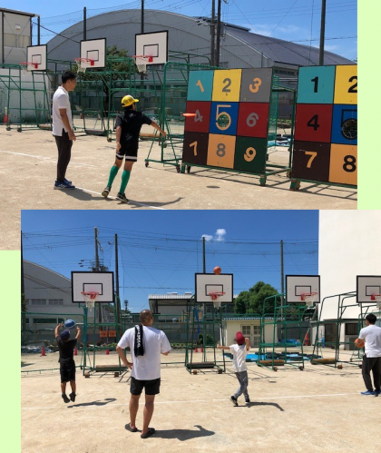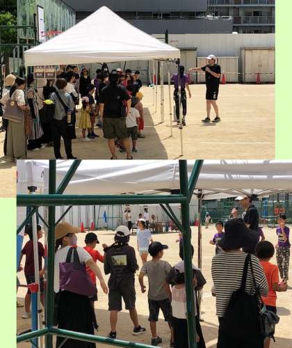 運動場では、ストラックアウトやフリースロー、理科の実験教室、陸上教室が行われました。