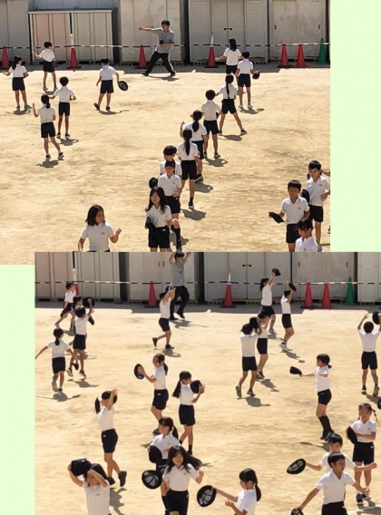 夏休みが開けてから、もっぱらお借りしている隣の体育館で体育の時間を過ごす子どもたちでしたが、今日は3年生が全員繰り出して、運動会の踊りの練習をしていました。