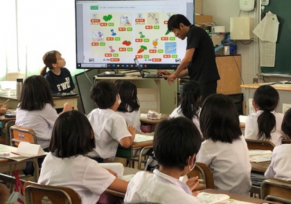 画面の向こうの登場する人がそれを好きかどうか想像して、答えも言い、それが合っているか当てるというゲーム形式で、授業が進められていました。