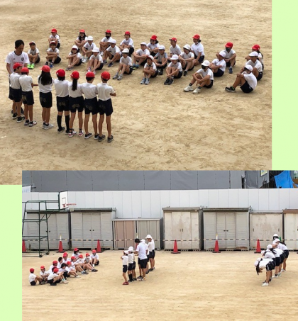 運動会の演技の練習が、これから始まるようで、とても熱心に子どもたちは耳を傾けているようです。