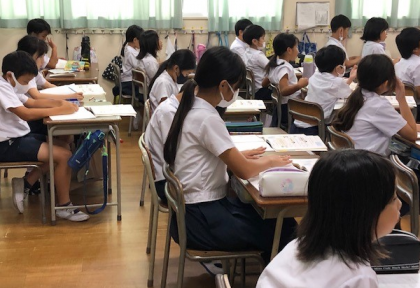 5時間目。4年1組の教室です。わり算の学習をしていました。