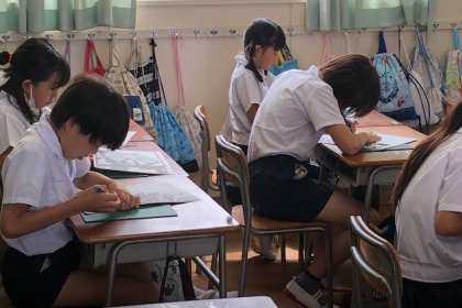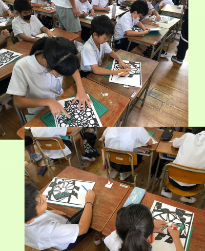3時間目。4年3組は図工の時間です。