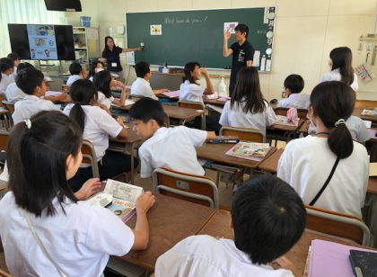 4時間目。5年4組の英語の時間です。