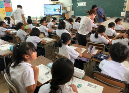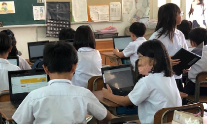 練習問題も解いて、答え合わせのために、パソコンを出し、先生の言う「クラスメート」の画面を開いて、答え合わせをする子どもたちでした。