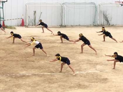 5年生の子どもたちが1時間目から運動場で練習です。昨日同様と見ていたのですが、知らぬ間に黒いTシャツに着替え踊りだしています。