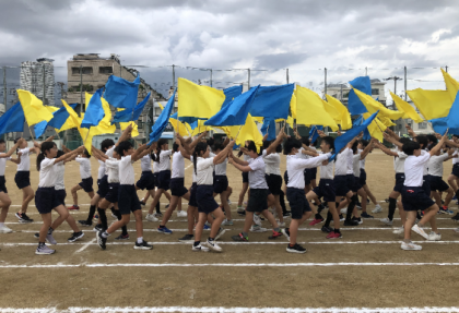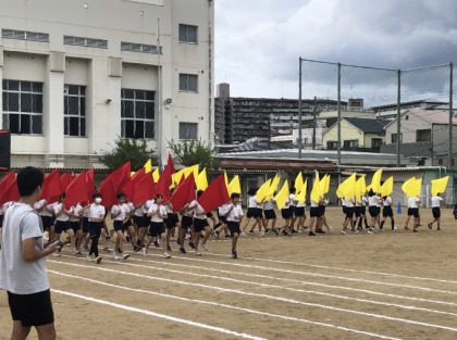 午後、運動会の本番会場になる梅香中学校に行き、しっかり練習をした6年生です。