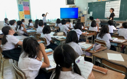3年2組の音楽の時間。「富士山」が題材です。