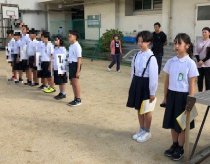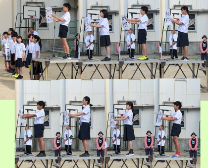 一人一人が校長先生から認証場を手渡され、朝会台に上がって、全校児童の前で抱負を述べました。