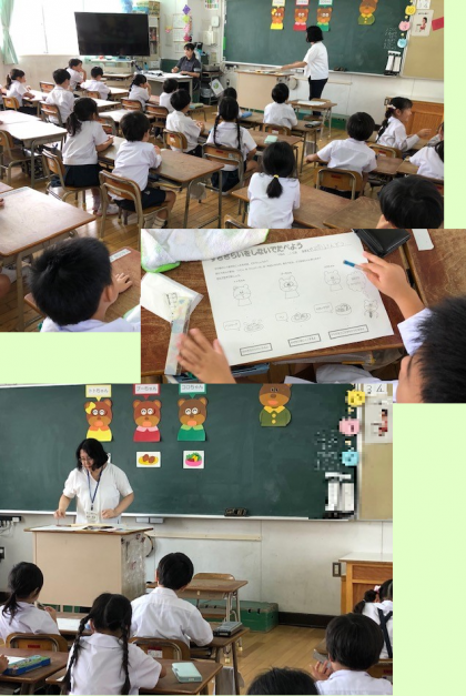 給食をあれが嫌い、これが食べれない、と残してしまう3匹のこぐま。大きな体になる、体を動かす力になる、かぜをひきにくくする、という3つの栄養素をバランスよく摂ることが大切であることを、紙芝居を見たり、プリントに記入したりして学びました。
