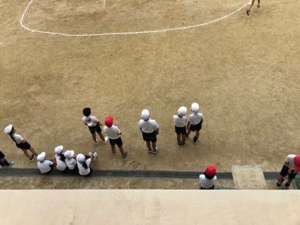 最初は運動会の団体演技で踊ったダンスの総括をしているようでしたが、しばらくすると、元気な声が飛び交うようになりました。