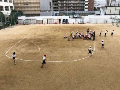 見ると小さいトラックの周りを子どもたちが走り、競争をしています。