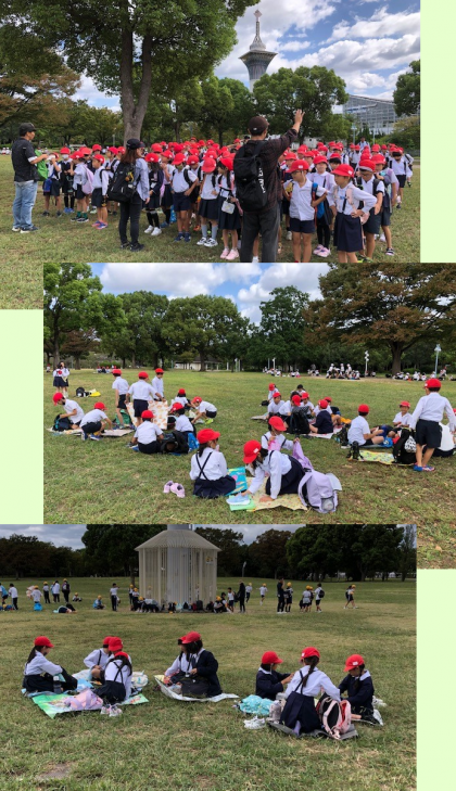 待ちに待ったお弁当は、緑のじゅうたんが広がった原っぱでいただきました。
