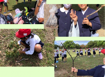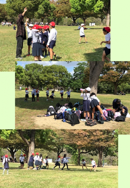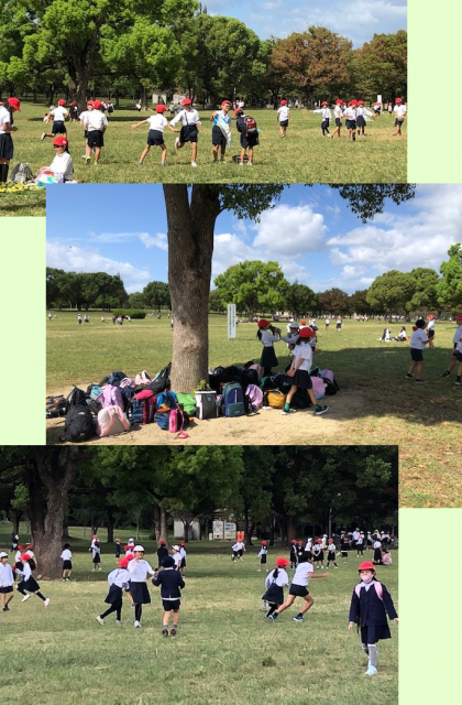 リュックを一つの木の根元に置いて、最初は鬼ごっこだけでしたが、みんないろいろなことを始めました。