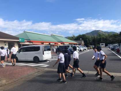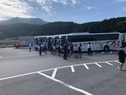 伊賀SAに着きました。ここでトイレ休憩です。他の学校も来ていて、トイレは少し混雑していますが、ここまで順調です。