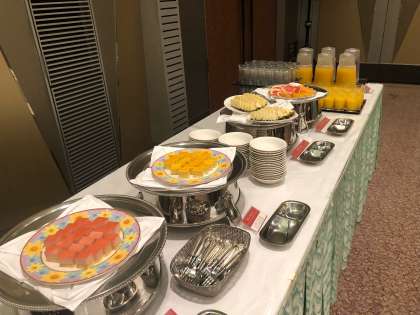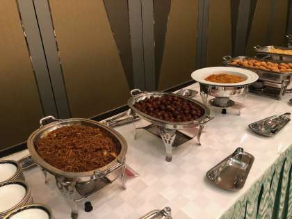 ホテルの結婚式場のようなホールで、バイキング形式で夕食をいただきます。
