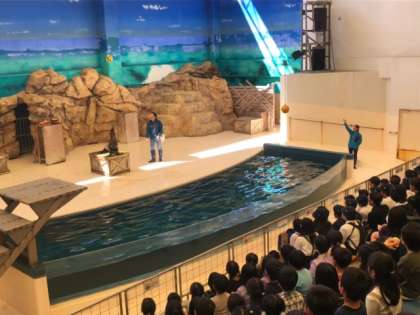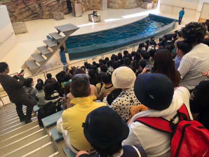 アシカのショーです。最前列の中央の特等席を確保しました。