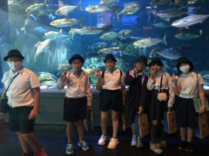 仲良くグループで活動しています。広い館内なので、なかなかみんなを見つけることができません。