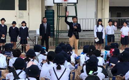 最後に引率の担任の先生たちが、一人ずつマイクを持ちました。