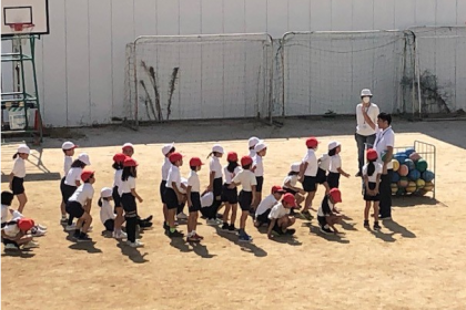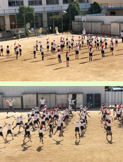 合同で体操をしていましたが、大きく手を広げて思いっきり飛び跳ね、元気いっぱいの様子です。