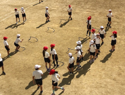 教室は工事に近い場所で、今日は大変だったけど、運動場での体育は、のびのびできたようでした。