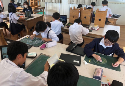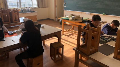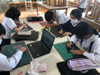 6時間目のクラブの時間。図工室では切り絵・絵画クラブが活動しています。