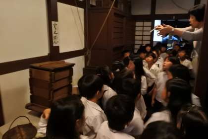 また、今昔館では、説明を受けるまでの間、静かに待つこともできました。今昔館の方からは、「待つ態度が素晴らしい。」とほめていただきました。説明を聞く態度もよかったので、予定よりたくさんの昔の道具を紹介してもらいました。子どもたちは江戸時代にタイムスリップした気分で、昔の街並みを興味深く見学することができました。