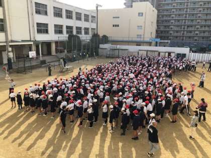 少し冷える朝です。月曜の朝会を運動場で行いました。