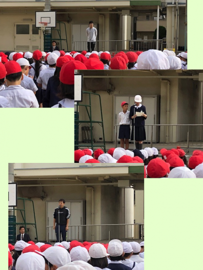 当番の先生からは、今月の生活目標についてお話がありました。11月は「元気な声であいさつしよう」です。そして前半の目標は「自分からあいさつしよう」です。みんな頑張りましょう。