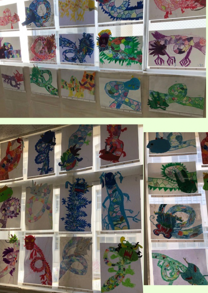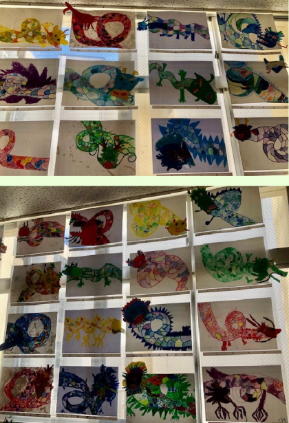 頭は別な紙に描いて貼り付けましたが、そうすることで、立体的に見えて、とてもリアルな龍が完成しました。