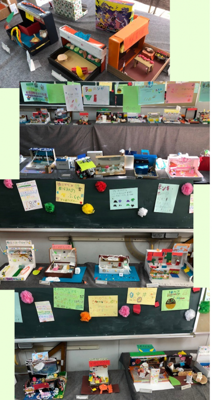 社会科でいろいろなお店を学んだこともあり、お店作りも熱心に行った子どもたち。