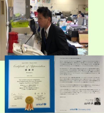校長先生からは、今日からのあいさつ運動と募金活動についてと、ユニセフの募金を送ったあとで本校に来た感謝状についてお話がありました。