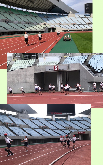 青い青い快晴の空の下、50000人収容できる大きなスタジアムで、気持ちよく運動を楽しむ一日となりました。