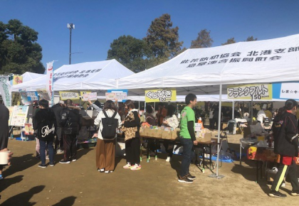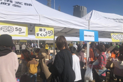 11時から、学校から北、淀川に近い公園で、今年度も地域のエンジョイカーニバルが行われました。
