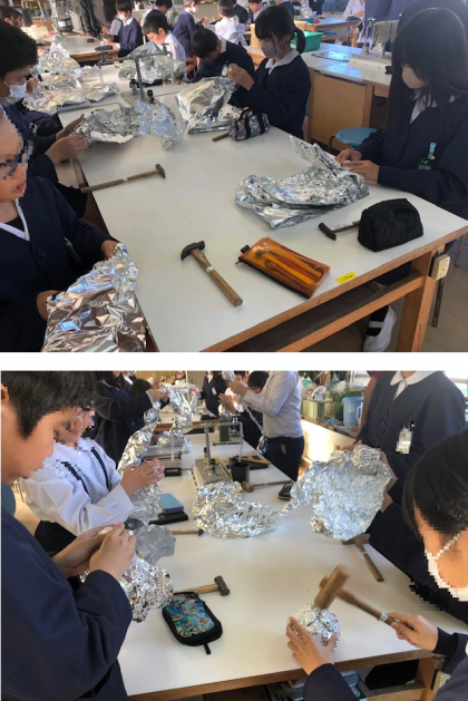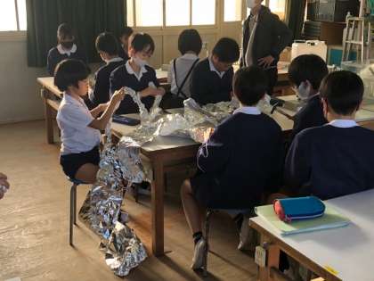 アルミ箔をみんなが持っていて、何をしているのでしょう??
