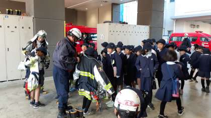 消防署では、クラスごとに分かれて様々な体験をさせていただきました。