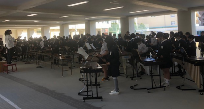 5時間目。ピロティから楽器の音が聞こえてきました。