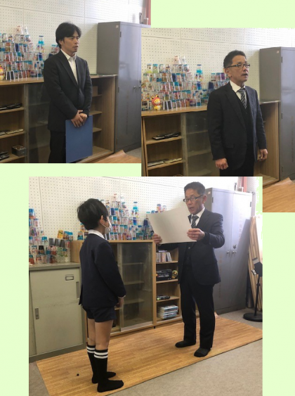 最初に、防火防災図画で大阪市消防局から表彰された児童の披露がありました。