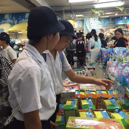 午後は、鳥羽水族館での活動です。水族館内は活動班ごとにまわります。いろんな海の生き物を見たり、お店でお土産を選んだり、班ごとに楽しんでいます。