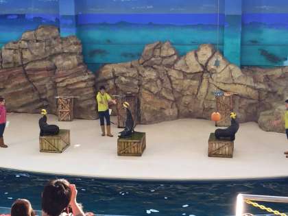 アシカショーでは、アシカのダンスやパフォーマンスに、子どもたちは大興奮です。