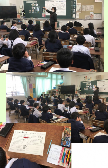 今日の2時間目に2年3組と4組、3時間目には2年1組と2組が、外部の先生に来ていただき栄養指導を受けました。