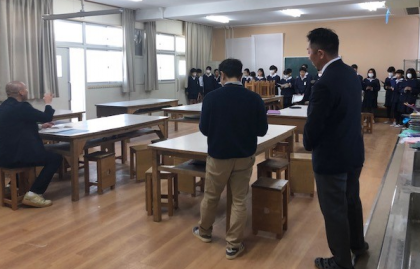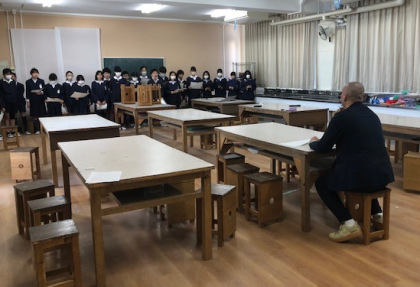 2時間目と3時間目の間の15分休み、給食を食べた後の昼休み、教室と同じ階の図工室に集まって、6年生が「よびかけ」の練習です。