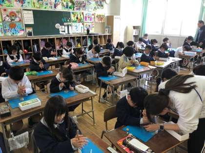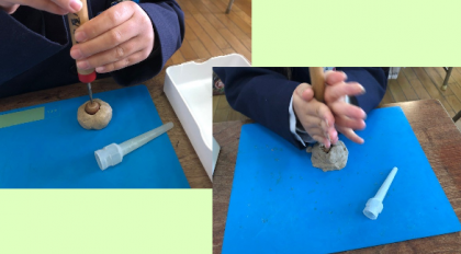 粘土遊びかな、と教室を覗きました。ちょっと様子が違うのは、子どもたちの手に何やら道具が握られていること。