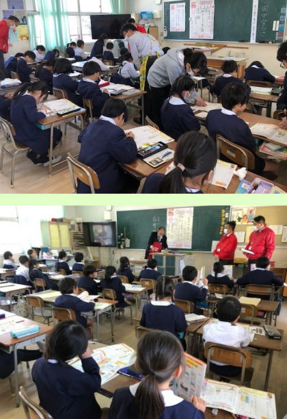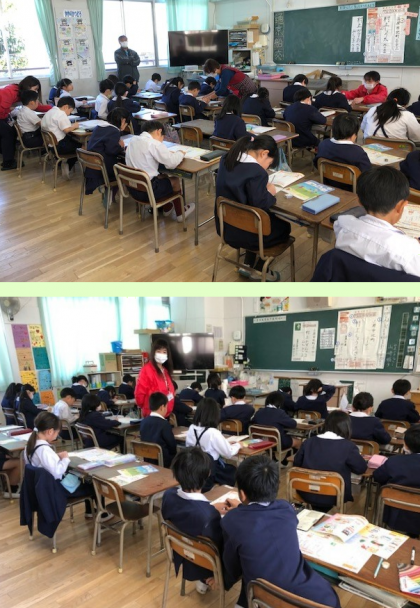 2時間目と3時間目。2年生の子どもたちが、郵便局の方々に来ていただいて、はがきの書き方を学習しました。あて名の書き方、差出人の書き方等、決まり事などを丁寧に教えていただきました。