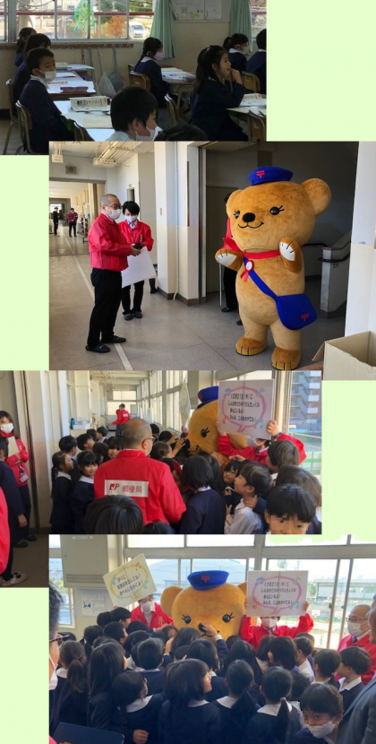 時間と時間の間には、スタンバイしてくれていたマスコット「ポスくまちゃん」が廊下にお目見え。歓声をあげる子どもたちに、瞬く間に囲まれ、大人気のポスくまちゃんでした。