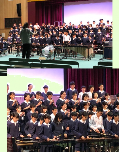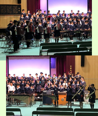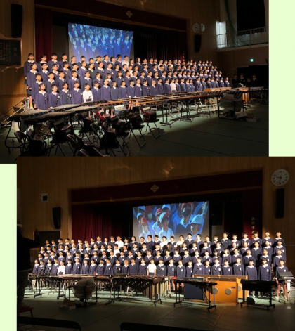 今朝。6年生が明日の式典に備えて、講堂で通し練習をしました。