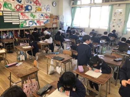 算数の授業、作文の発表、通知用の手渡し中にプリント学習。