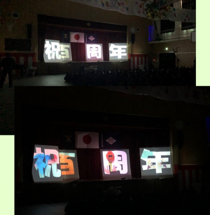 集まった子どもたちを前に教頭先生が説明をし、式典のときのオープニングと同じ演出が成されます。照明が暗くなっただけでも「わあ!」とまた歓声です。