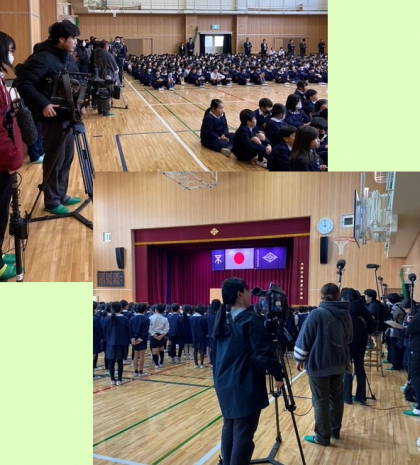 今日の学期始まり。報道各社が本校に取材に来ました。