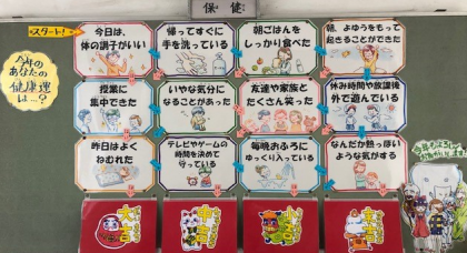 保健室の前、今月の掲示は「今年のあなたの健康運は?」です。