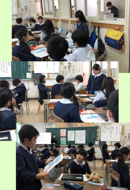 初めに全体で押さえた観点でお互いを批評し合い、最後に振り返りをしました。